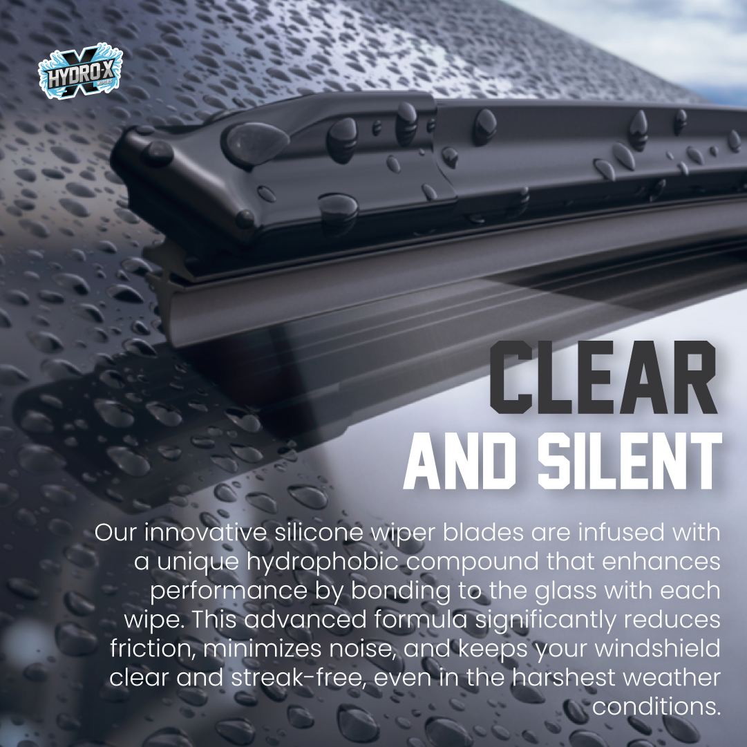 We guarantee there’s no other wiper blade like Hydro X available in Australia. Engineered with advanced silicone technology and an integrated hydrophobic coating, our wipers actively apply a water-repellent layer to your windscreen with every swipe. This cutting-edge design ensures optimal visibility even in heavy rain, as the hydrophobic silicone disperses water instantly, allowing you to drive with a clear, unobstructed view. Experience the next level of clarity and performance, with Hydro X Wiper Blades working tirelessly to keep your windscreen pristine.